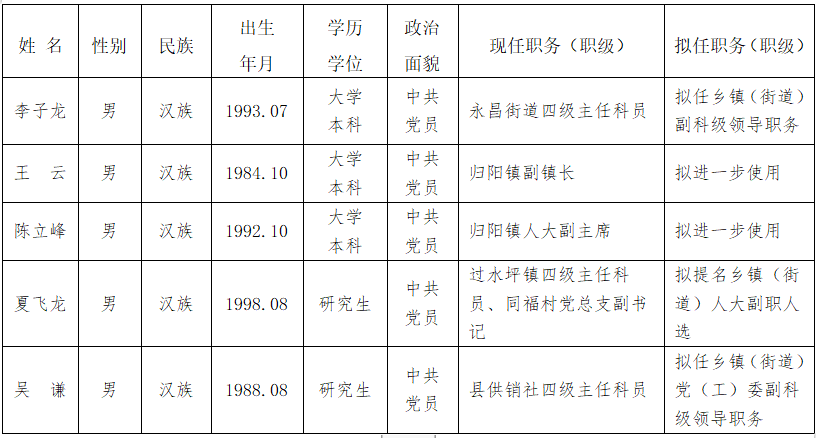 为了加强对干部选拔工作的监督,提高识别和任用干部的准确程度,现对祁东县委常委会会议研究的下列拟任人选进行任前公示: