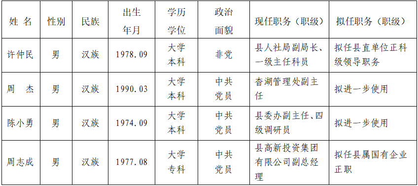 干部任前公示公告